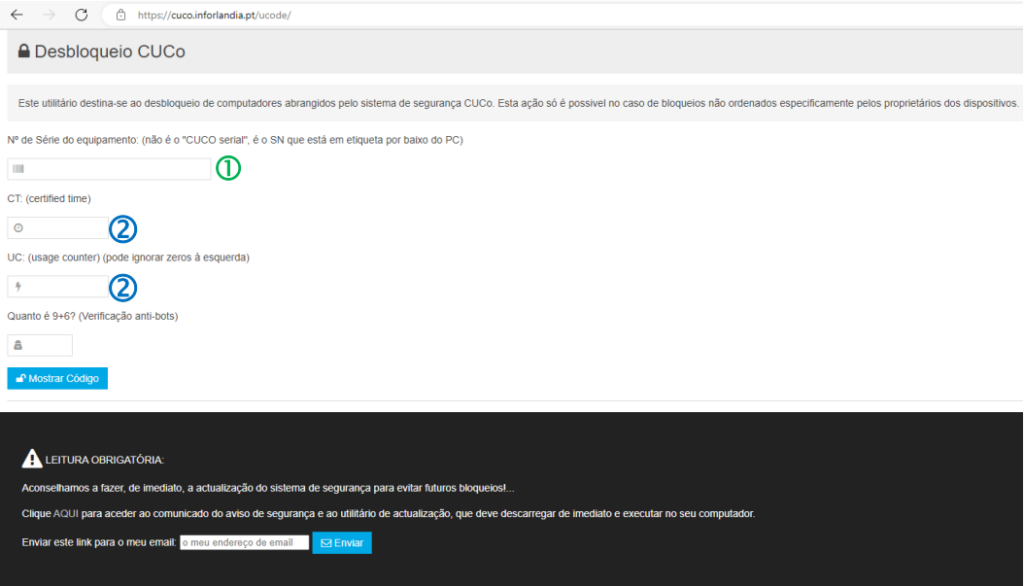 Depois do Windows iniciado, tem de executar a atualização do Sistema de Segurança CUCO, de forma a evitar futuros bloqueios (caso não execute este passo o computador volta a bloquear).